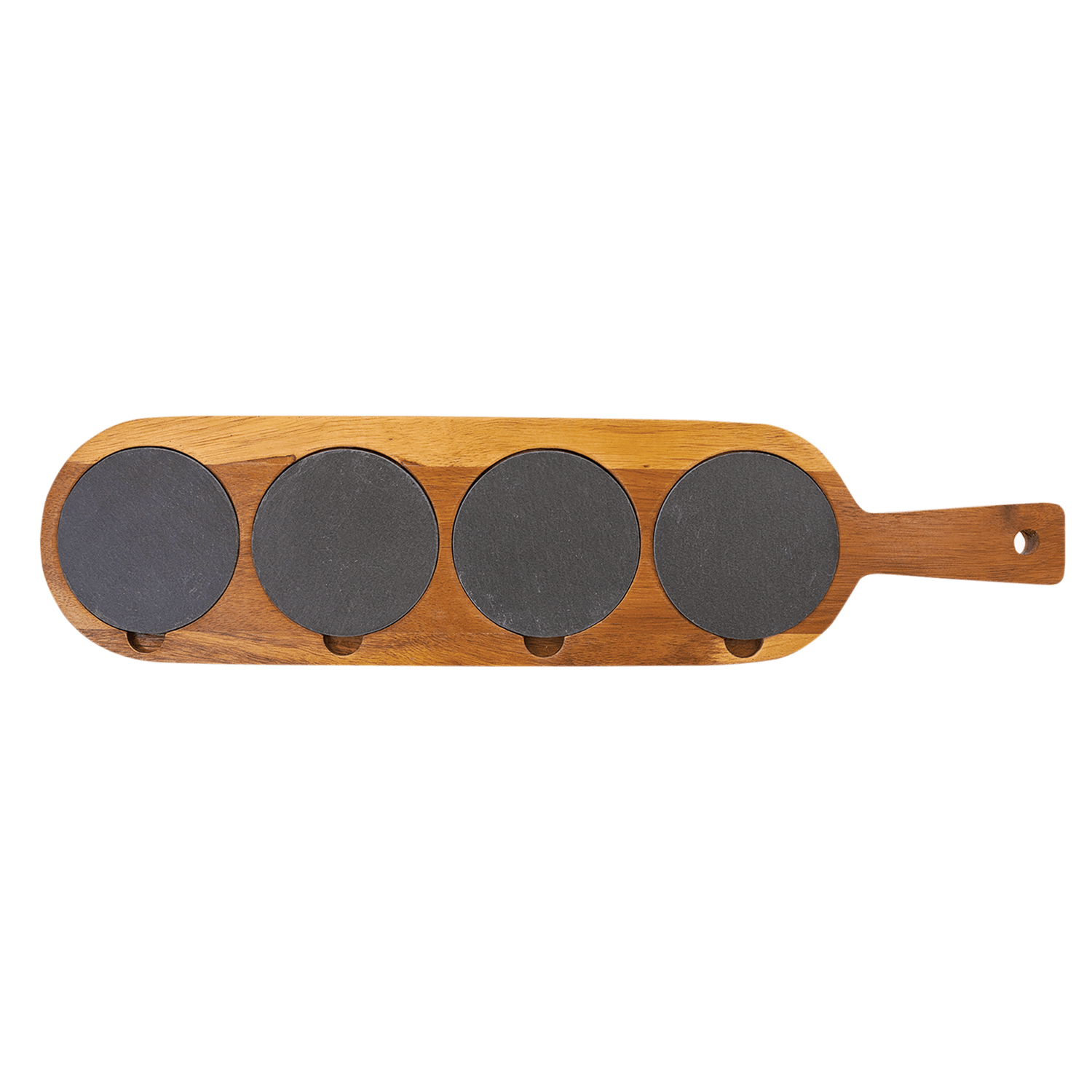 Acacia Wood/Slate Flight Serving Board is backordered and will ship as soon as it is back in stock.