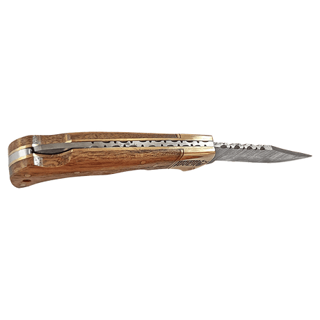 Bison River 9 1/2" Fixed Blade Wood Knife with Damascus Steel Blade and Leather Sheath
