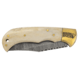 Bison River 3 3/4" Bone Folding Knife with Damascus Steel Blade and Leather Sheath - Bone Handle is backordered and will ship as soon as it is back in stock.