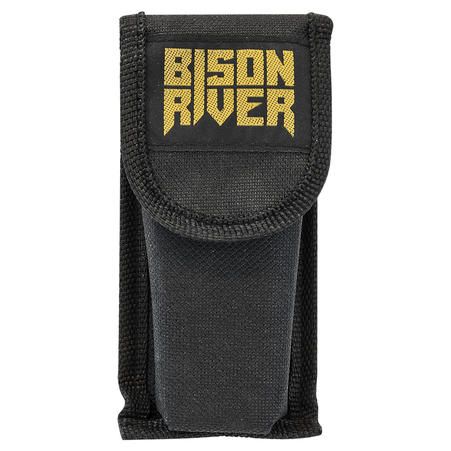 The Bison River 13 Function Multi Tool comes in a nylon sheath with a hook and loop closure and a belt loop on the back. Slide it on your belt to keep it handy, or the compact size makes it perfect for your backpack or to keep in your vehicle. With 13 tools incorporated, you'll have what you need for just about any situation. The 13 function multi-tool is packaged in a Bison River branded box and makes a great gift or incentive.