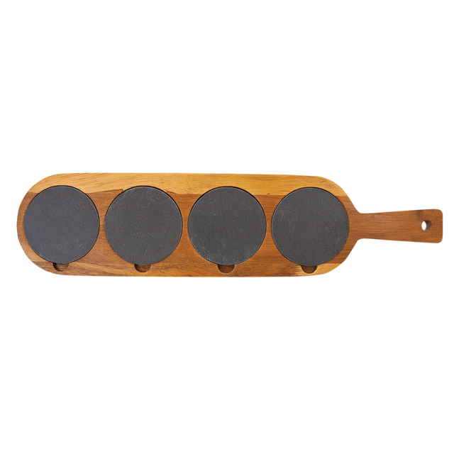 Acacia Wood/Slate Flight Serving Board is backordered and will ship as soon as it is back in stock.
