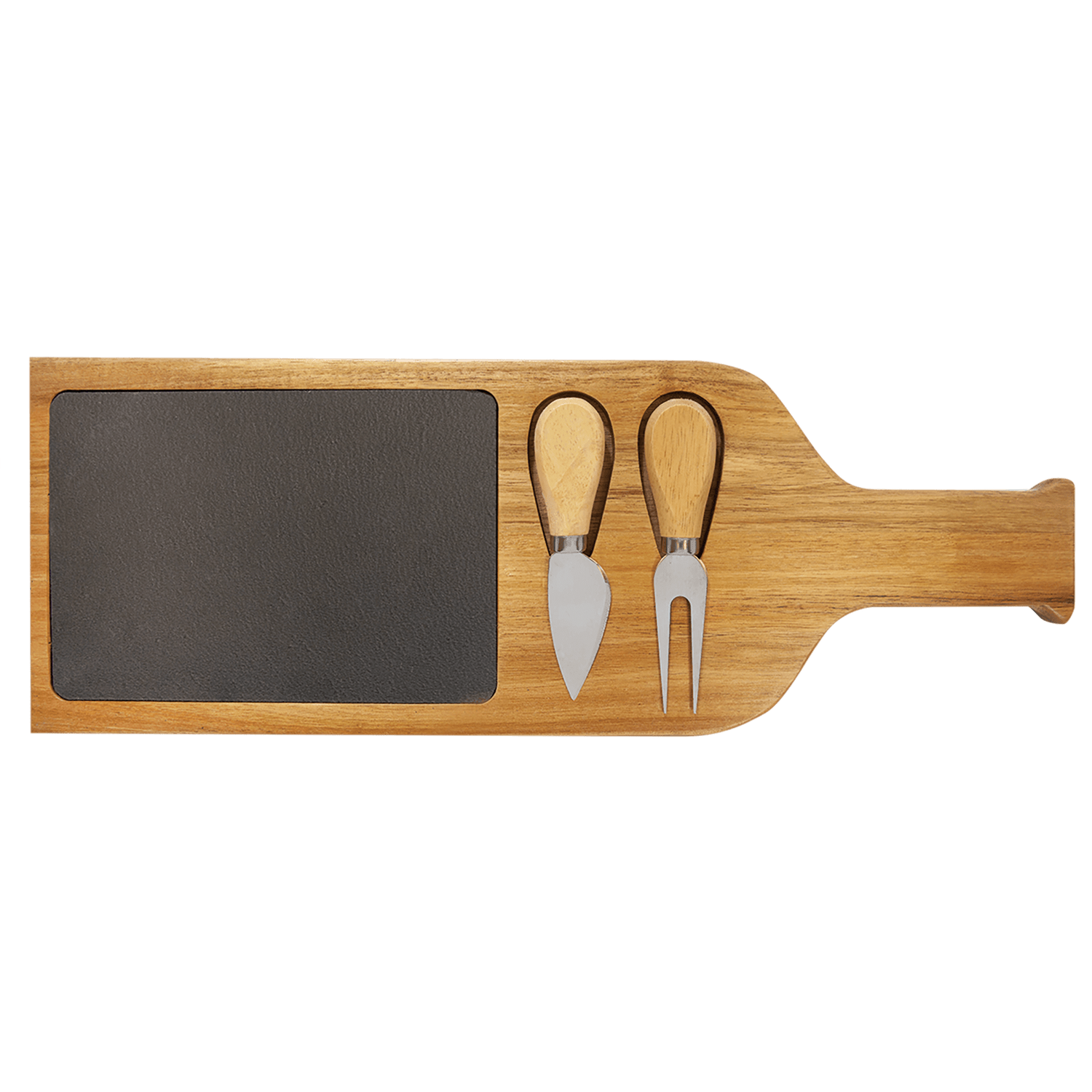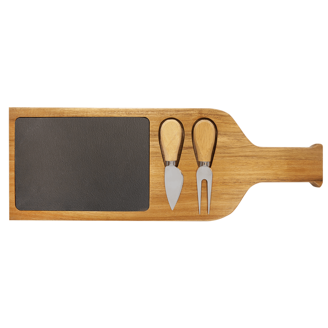 Acacia Wood/Slate Serving Board with Two Tools, 17 1/2" x 6"