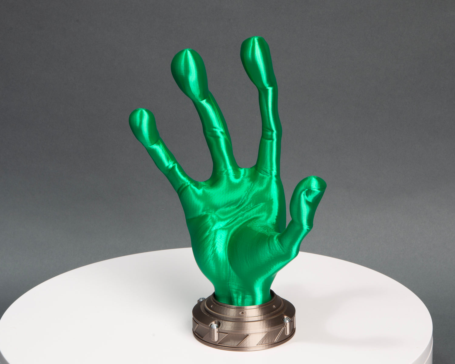 Alien Hand Game Controller Stand, 3D Printed in purple or green with champagne gold silk PLA on the base.