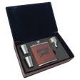 Score big with this premium Flask Gift Set — the perfect blend of style, function, and personalization. Each set includes a 6 oz. stainless steel flask, two matching stainless steel shot glasses, and a convenient filling funnel, all neatly packaged in a gift box wrapped in your choice of football or basketball-textured leatherette for a sporty, tactile finish.