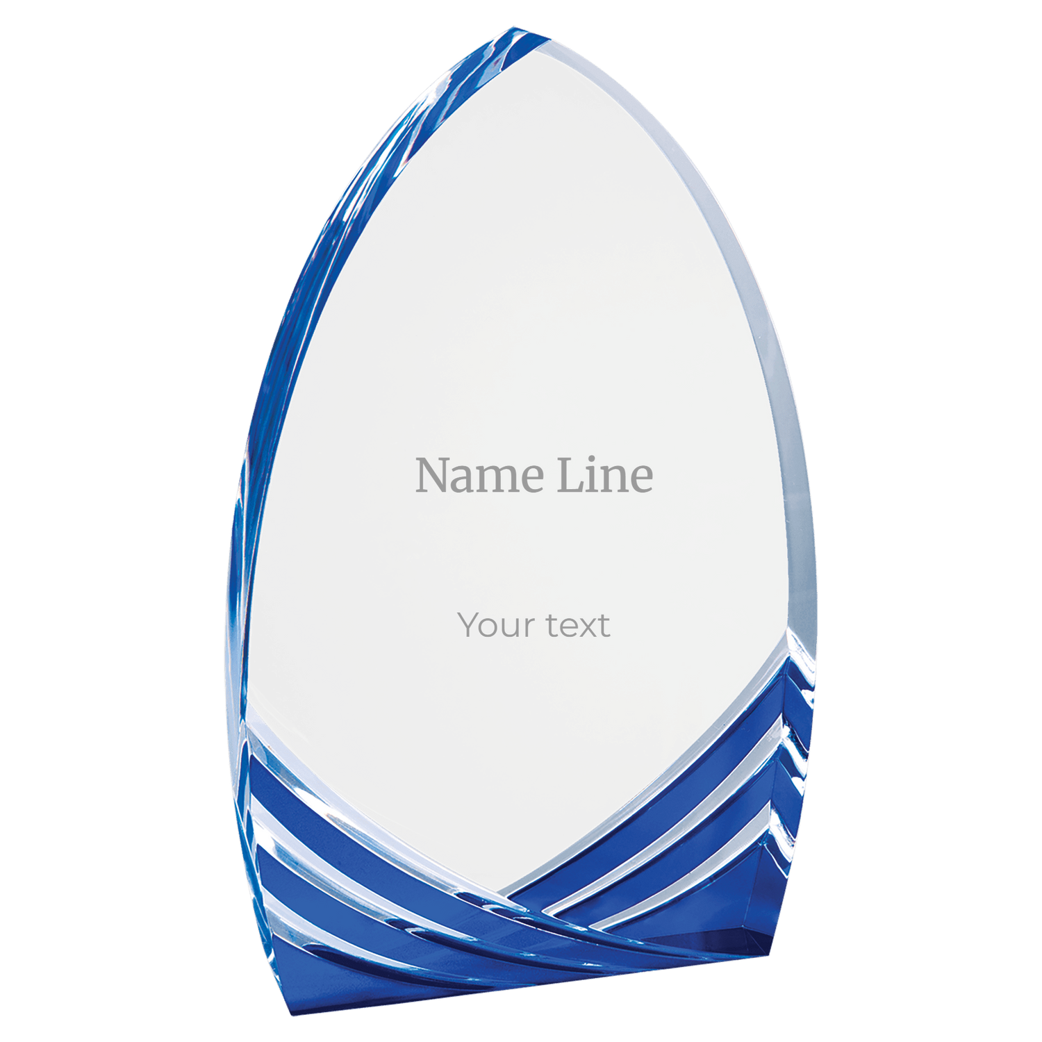 Premier Acrylic is the ultimate way to recognize and honor. Soaring Acrylics are 1 inch thick and self-standing. They are available in 2 shapes, rectangle and arch cathedral in either blue or black. They are easily customizable by either rotary engraving or laser engraving.