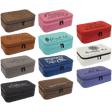 Leatherette jewelry boxes are perfect for home or travel. Unsnap the inside of the lid to reveal a mirror and holders to keep chains and other items securely in place. A removable component in the bottom has a snap mirrored lid that also holds items in place and loose items in the bottom, and can be used on it's own. Available in several gorgeous colors, these 7 1/2" x 4 1/2" jewelry boxes make a wonderful personalized gift or incentive.